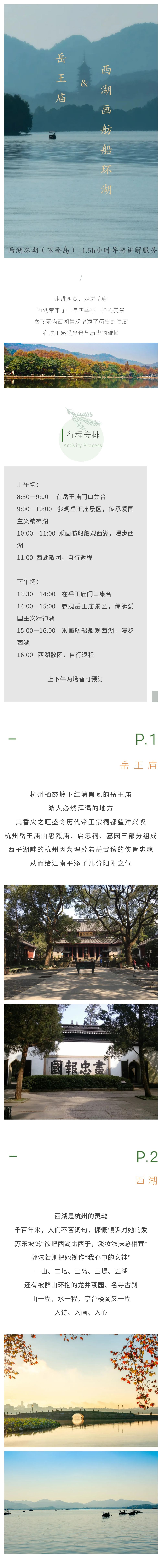 本行程為10人內拼團導覽服務,包含岳王廟門票+西湖遊船票+導覽;頁面價格為1人單價,請依照實際旅客人數下單!