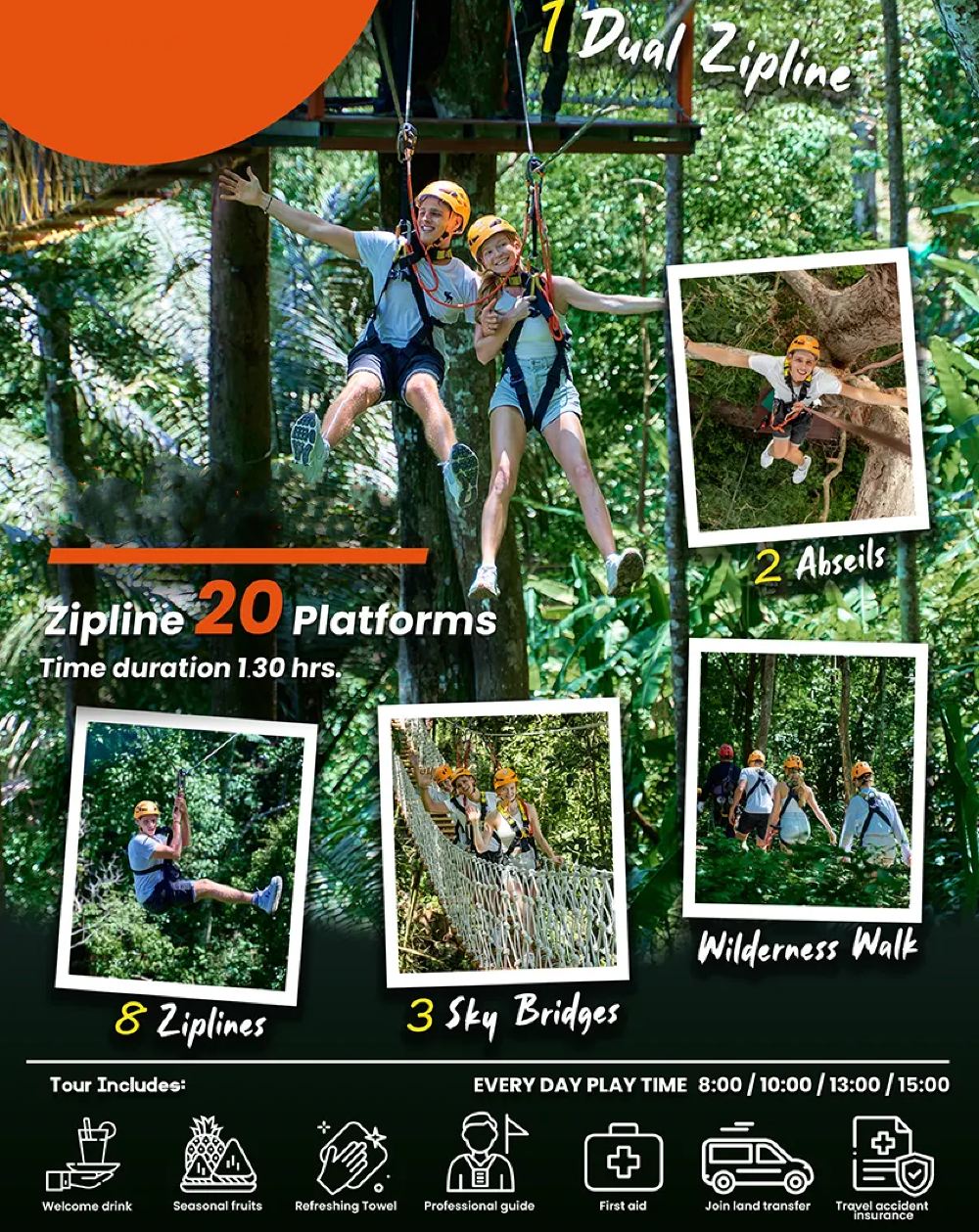 普吉島叢林飛躍空中飛人冒險體驗一日遊【哈努曼世界|可選擇多基地多站台的滑索體驗|進口裝備安全可靠