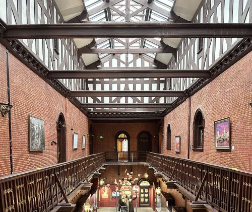 ▲ 浦江飯店,原名禮查飯店,始建於1846年,是中國最早的西商飯店,被譽為「上海著名的里程碑建築」。 週二到週日,入內參觀完浦江飯店,經過外白渡橋,則來到外灘源。 隔江,是陸家嘴金融貿易中心。 和平飯店南、北樓分別矗立在南京路步行街兩邊。