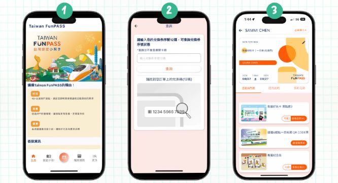 ② 下載 Taiwan FunPASS|台灣旅遊小幫手 APP,輸入兌換序號(一支手機可綁定多個序號)