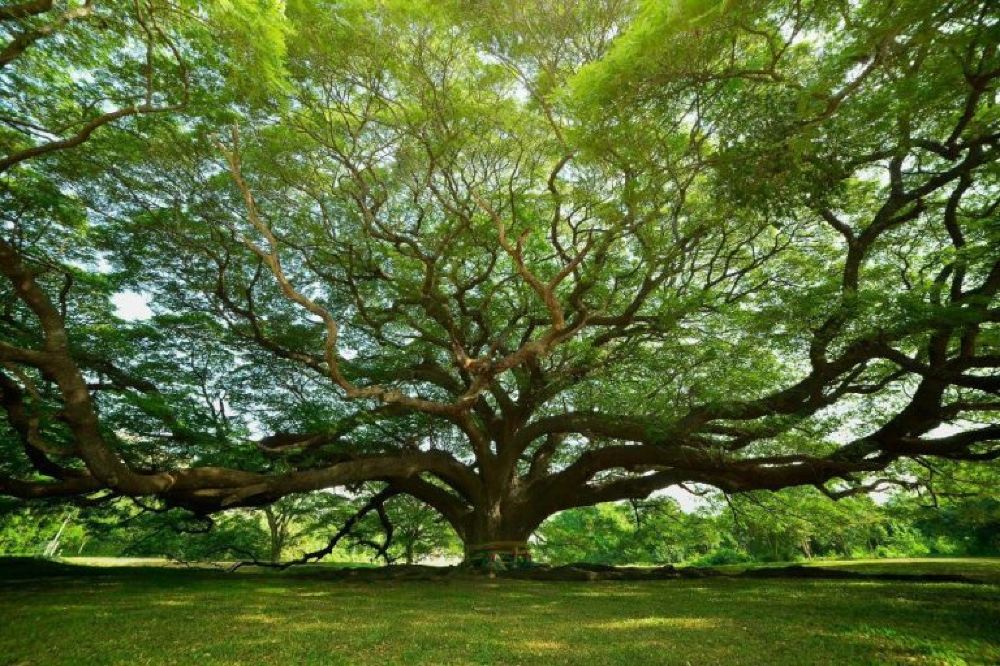 超過120歲樹齡的巨型大樹,樹冠巨大,枝藤綿延,用手機廣角鏡也很難拍下。在樹蔭下就能感受得到大樹的強大的生命力。