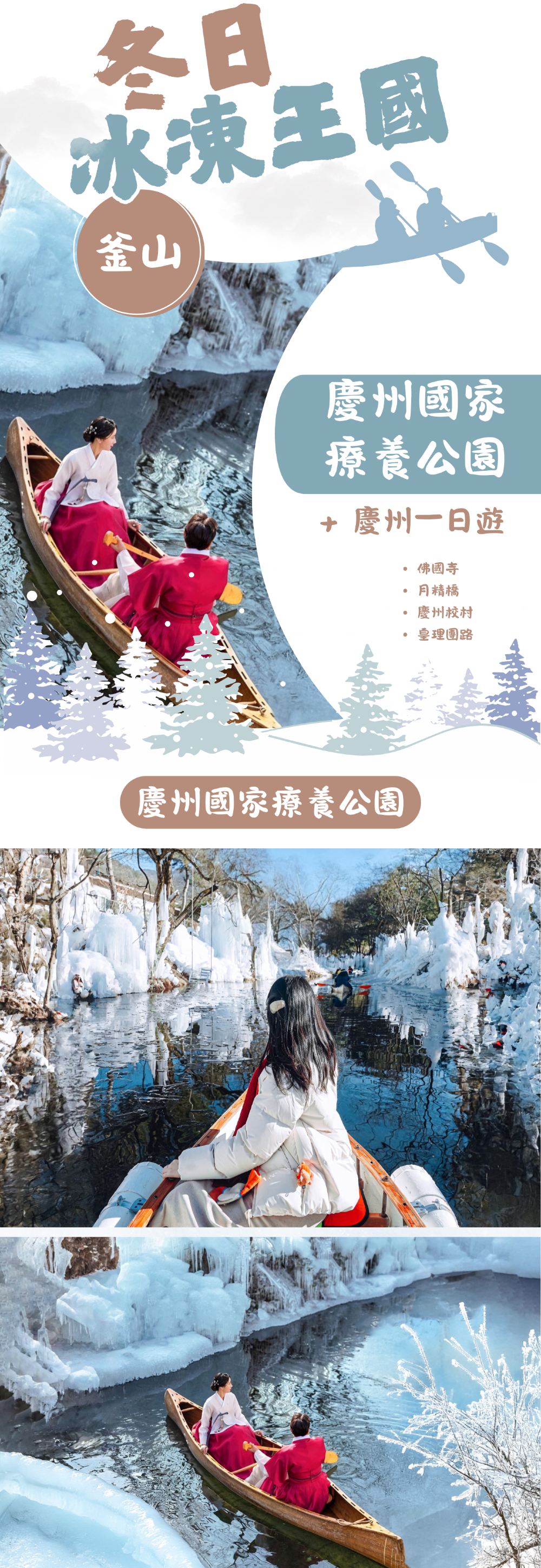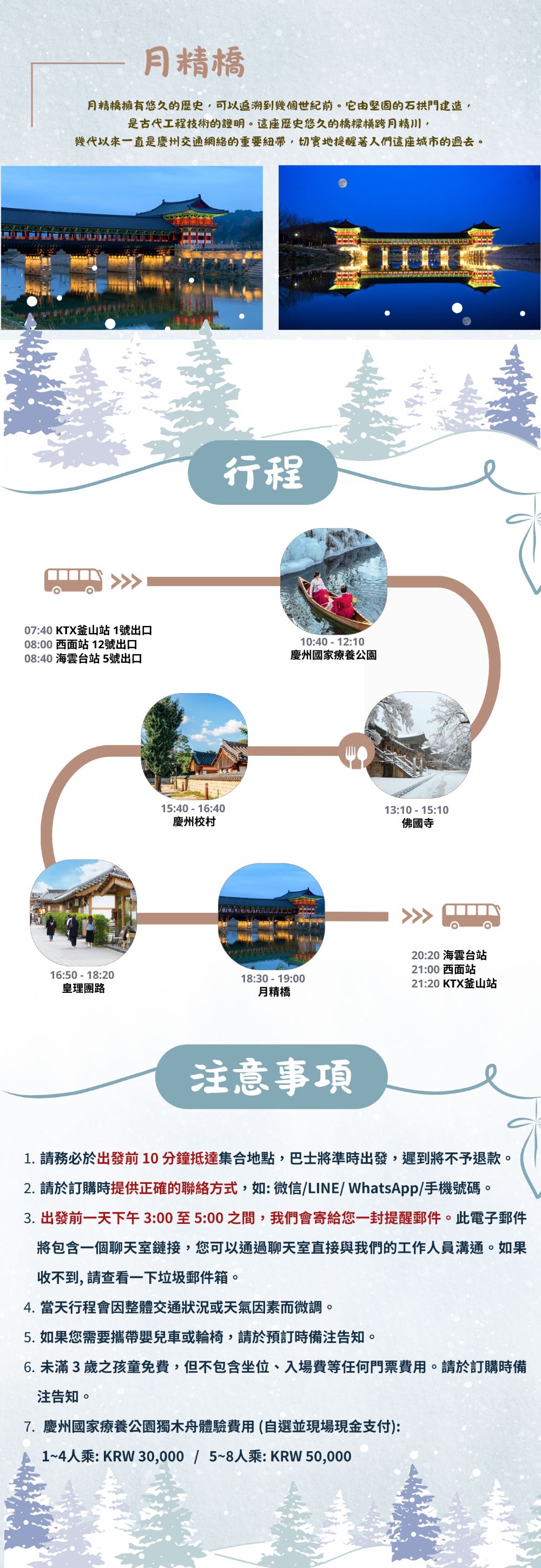 慶州冰凍王國之旅:國民療癒公園+慶州古蹟佛國寺+月精橋+慶州校村+皇理團路一日遊(釜山出發, 冬季限定)