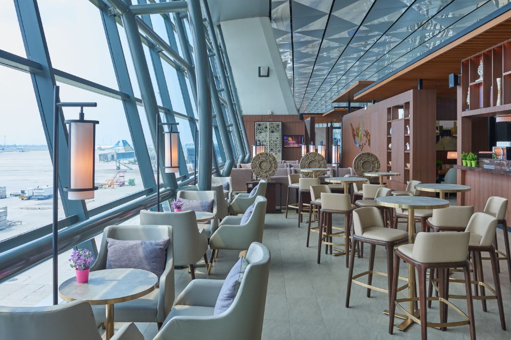 這貴賓室位於3號客運大樓國際離境大廳,提供我們的標誌性設施及服務,例如舒適的沙發座椅、充電插座和無線網路、新鮮烹製的熱食及多種飲品、淋浴設施及用品等。在等待您的航班時,可以在旅途中工作或放鬆休息。