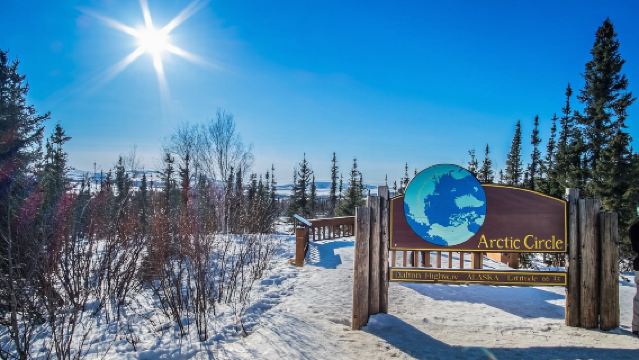 美國阿拉斯加州費爾班克斯陸路探險北極圈一日遊,打卡北極圈標誌
