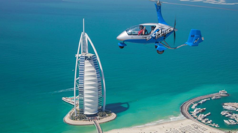 如果您想體驗離地面更近的刺激,可以乘坐 Skyhub 的旋翼機飛行。這架獨特的雙座飛機由我們值得信賴的飛行員駕駛,在 1,500 英尺的高空為您帶來獨特的體驗。飛行路線將帶您沿著杜拜碼頭海岸線飛行,途經該市一些最具標誌性的景點,包含杜拜之眼(世界上最大的摩天輪)、朱美拉棕櫚島、亞特蘭提斯飯店、世界群島和壯觀的帆船飯店。
