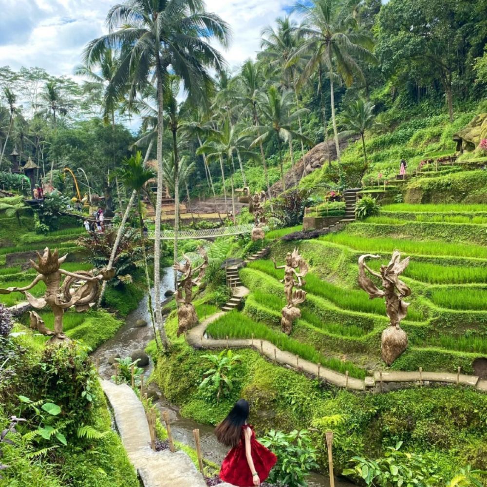 離開宮殿後,我們繼續前往Alas Harum Bali梯田,這裡展現了大自然的壯麗與美麗。層層疊疊的稻田如翡翠般的綠色海洋,展現了人類智慧與自然的完美融合。當您沿著蜿蜒的小徑走過梯田,您能感受到人與土地之間深厚的連接。這裡的美景寧靜而動人,峇里島的鄉村風光令人陶醉,讓每一位旅行者都心曠神怡。
