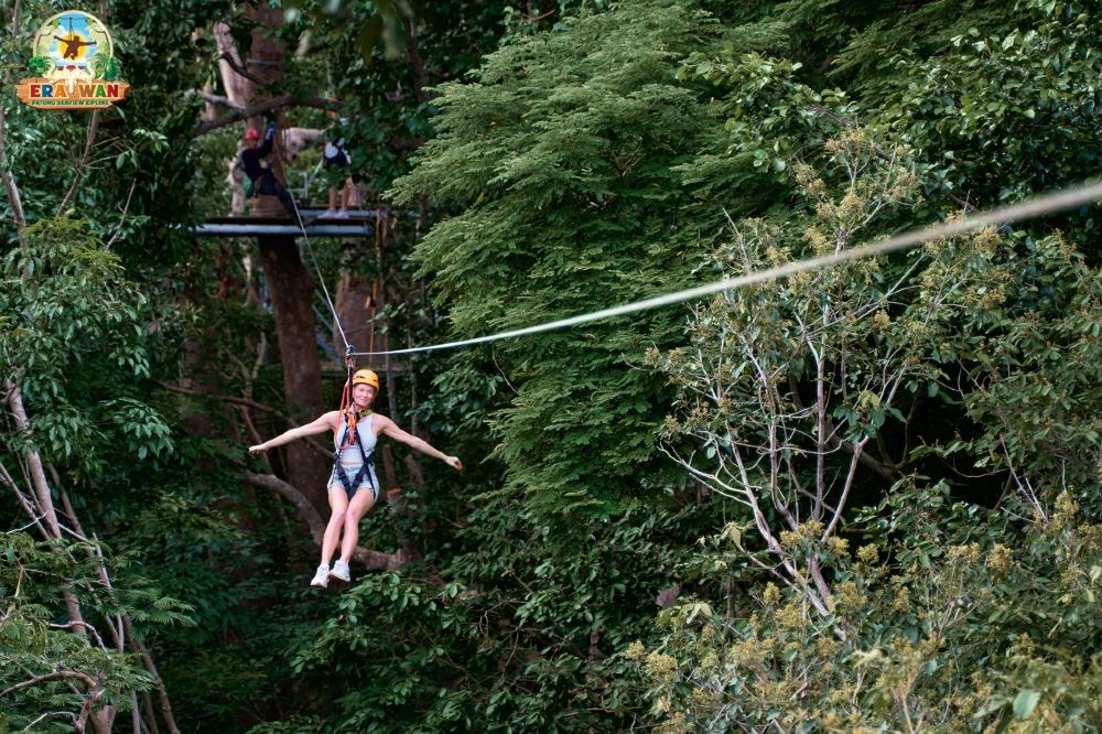 開啟一段驚險刺激的冒險之旅,體驗愛情侶灣芭東滑索 (Erawan Patong Zipline),它坐落在壯麗的叢林山巒上,俯瞰普吉島著名的芭東海灘。沿著普吉島最長的滑索,超過 700 米,飛越樹梢,飽覽鬱鬱蔥蔥的熱帶雨林美景。沿途,您可以探索樹屋、鳥巢、吊橋、繩降滑索和天空滑板等精彩刺激的景點,將刺激與自然風光完美融合。