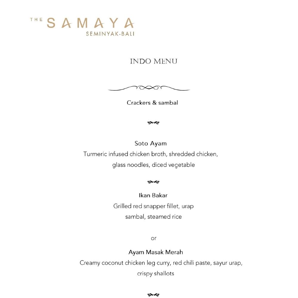 ▲The Samaya Seminyak 飯店 Breeze 餐廳的印尼晚餐菜單提供多種傳統峇里島和印尼菜餚,展現豐富濃郁的風味和當地食材。