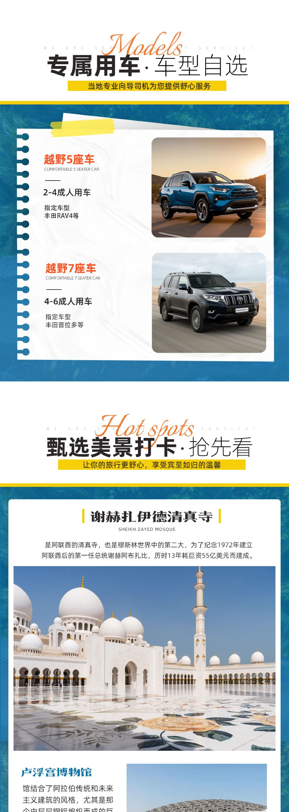 深度體驗阿布達比行程,打卡多處網紅景點,當地合規營運車輛。