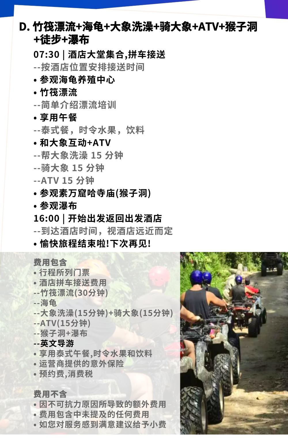 • 11歲(含)以上小童可以玩ATV、漂流,