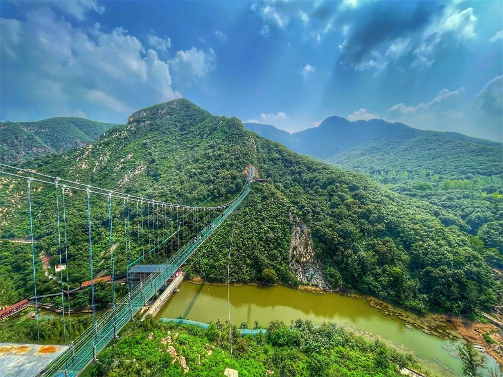 登封大熊山,位於河南省鄭州市登封市徐莊鎮境內,是一個集旅遊觀光、戲水漂流、戶外拓展、休閒娛樂、紅色旅遊的綜合性旅遊景區。景區坐擁高山平湖,谷幽林密,一路飛瀑流泉,其中有攬月湖、紅色文化展覽館、十里溪谷、情人谷、紅石寨、一線瀑布、大熊山仙人谷、風雨廊橋、觀景台、清風亭、百花園、高空滑索、仙人洞、滴水觀音像、瀑布、曲水流螞、滴水觀音像、金蟾座、七彩旱滑、仙人谷網紅鞦韆、紫藤長廊、山水音樂噴泉、音樂喊泉、天門湖、逍遙橋、3D玻璃旱滑、漂流戲水、飛雲天橋、玻璃天橋南觀景台、攬勝峰、情人谷、財神洞等景點。素有「十里溪谷、嵩岳勝境」之稱。