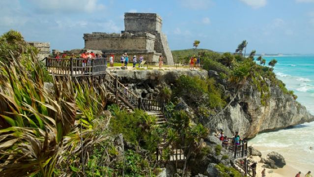 從飯店接您後,沿著叢林環繞的道路前往圖盧姆,這是一座坐落在海岸邊、俯瞰加勒比海波濤洶湧的瑪雅古城,四周環繞著城牆。途中,導遊會為您講解古代瑪雅文明以及縱橫交錯於尤卡坦半島的貿易路線。