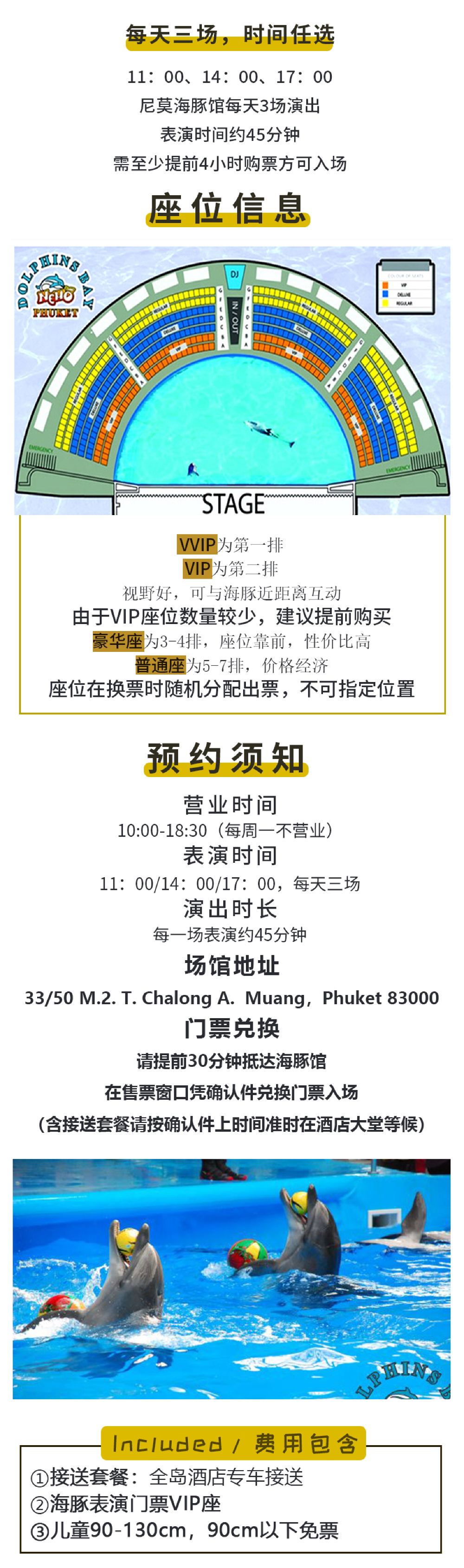 每天三場海豚表演:11:00, 14:00, 17:00