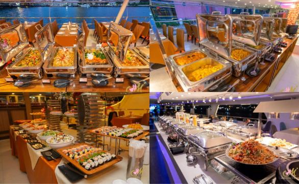 登上一艘設計精美的現代船隻,享用豪華自助晚餐,品嚐由頂尖廚師精心烹製的各式正宗泰式料理、國際經典美食與新鮮海鮮。用餐時還有現場音樂與娛樂表演相伴,無論是浪漫夜晚或與親友共度的難忘時光,都能沉浸於完美氛圍中。