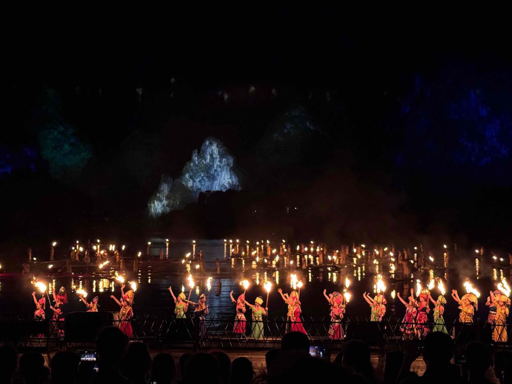 演出分為七個部分,透過歌舞、戲劇等形式再現了《印象劉三姐》山水實景演出的傳說故事,展現了壯族的歌謠、舞蹈和音樂等文化元素。演出中還融入了當地民俗風情,讓觀眾在欣賞美景的同時,也能深入了解到廣西豐富的民族文化。