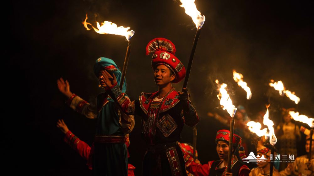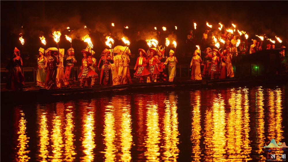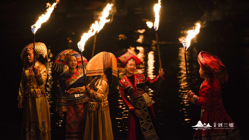 2、民族風情與文化傳承:演出以廣西壯族民間傳說中的歌仙《印象劉三姐》山水實景演出的故事為藍本,將經典山歌、民族風情和漓江漁火等元素創新性地融合在一起。