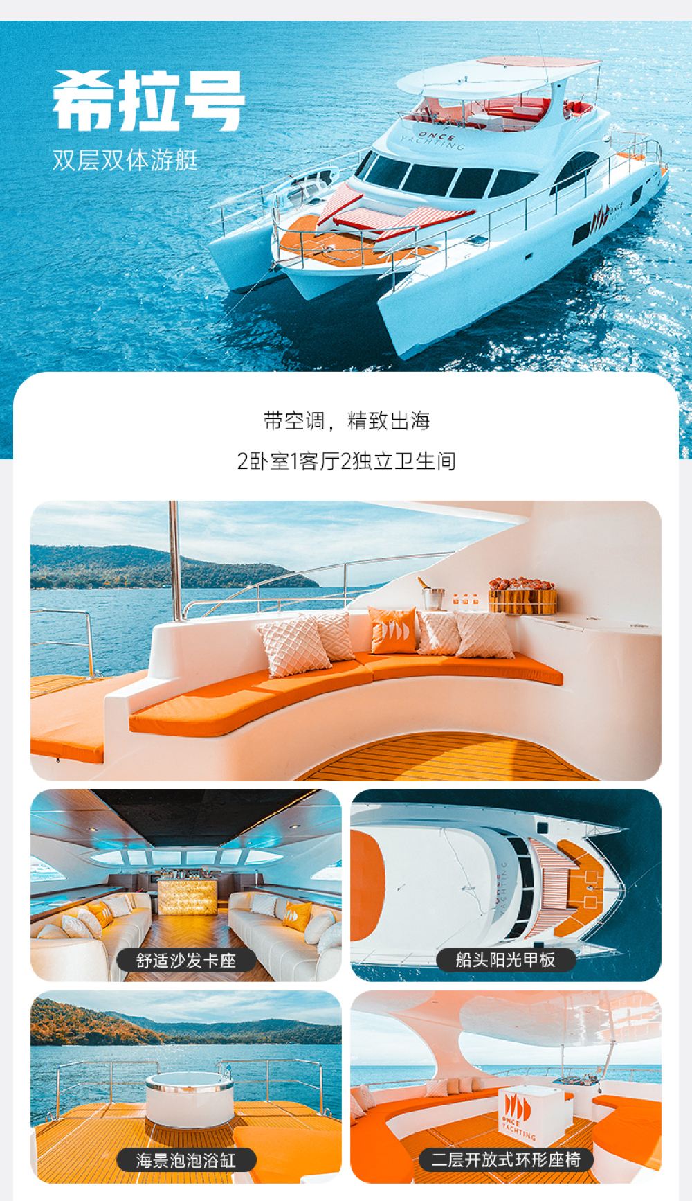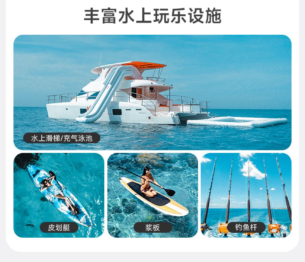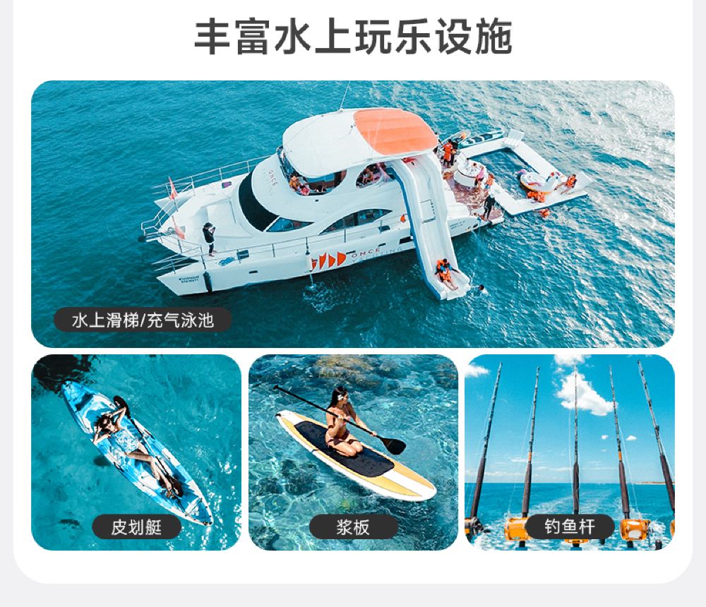2. 行程為包船產品,請提前預訂以便安排好路線與行程;預訂時請提供人數、路線、使用時間等詳細信息聯繫在線客服詢問合適船隻的空檔船期,且包船行程不保證預訂指定船型,敬請諒解~