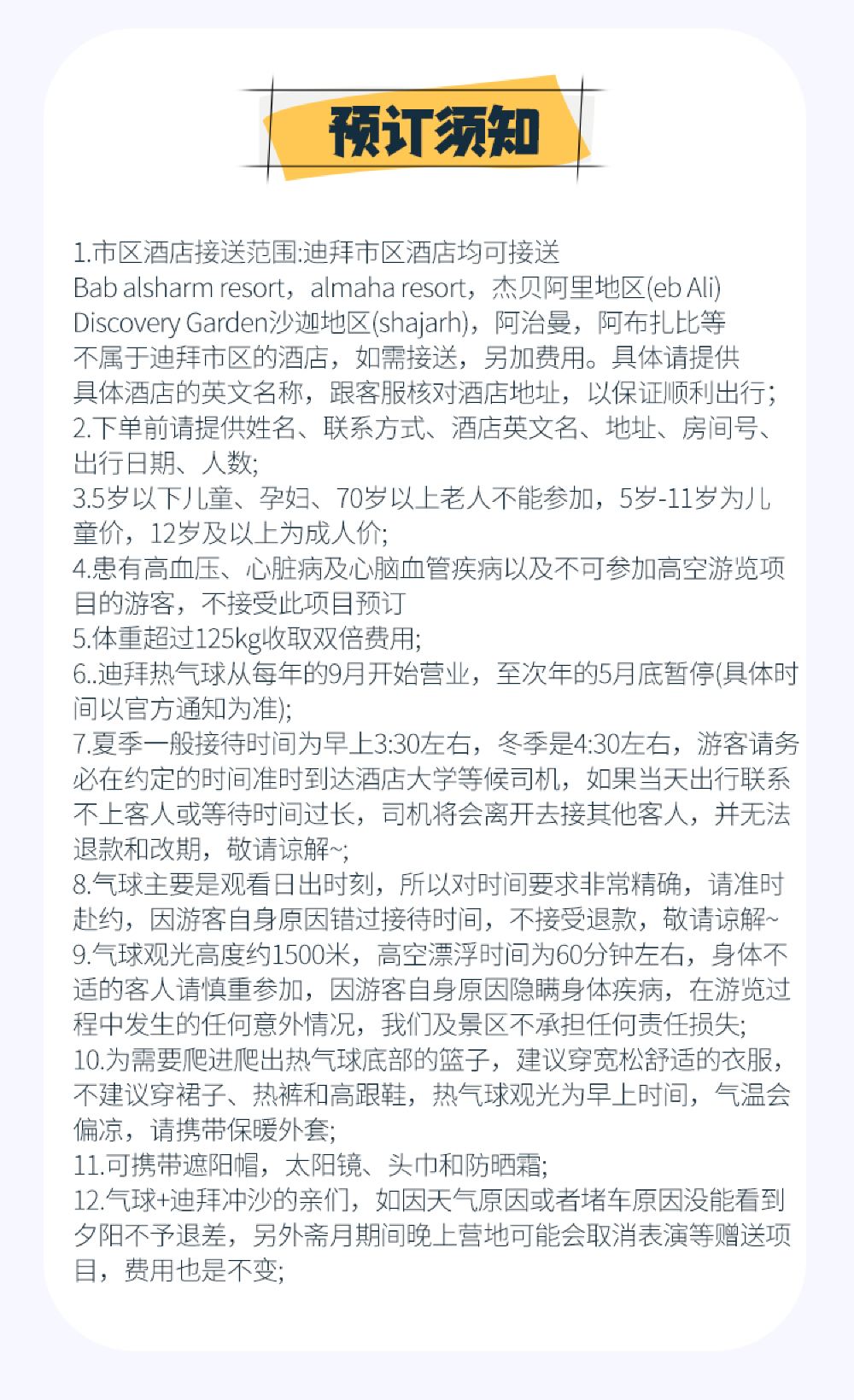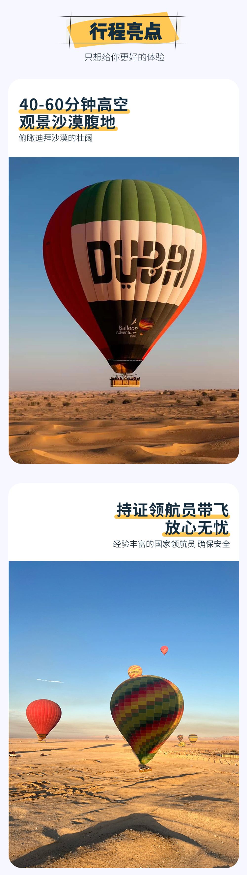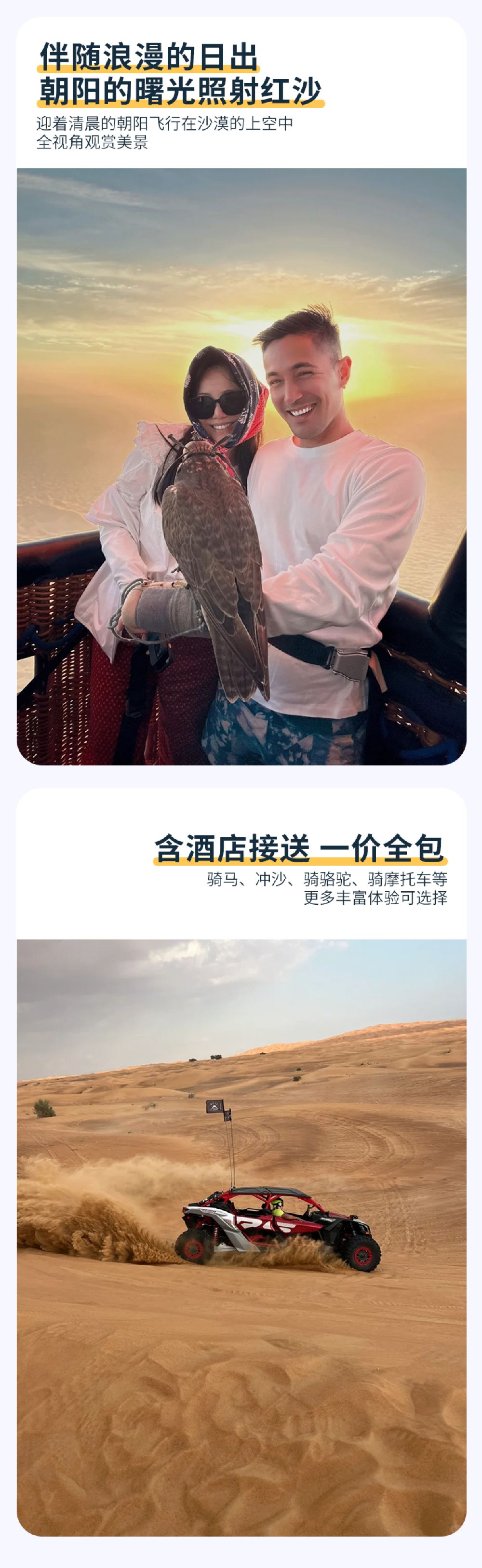杜拜沙漠冒險熱氣球體驗半日遊觀賞沙漠日出免費茶或咖啡獵鷹表演