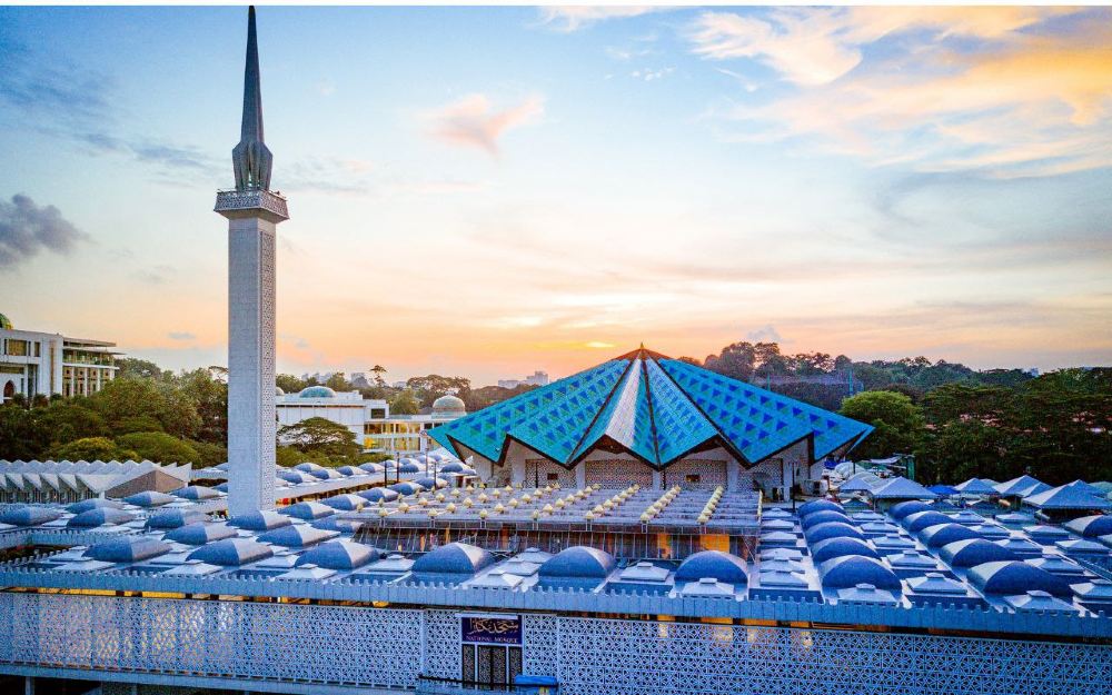 繼續前往國家清真寺,這座建築傑作以其獨特的傘狀屋頂和醒目的藍色圓頂聞名。驚嘆於其寧靜的氛圍與優雅設計,充分展現馬來西亞的伊斯蘭文化遺產。