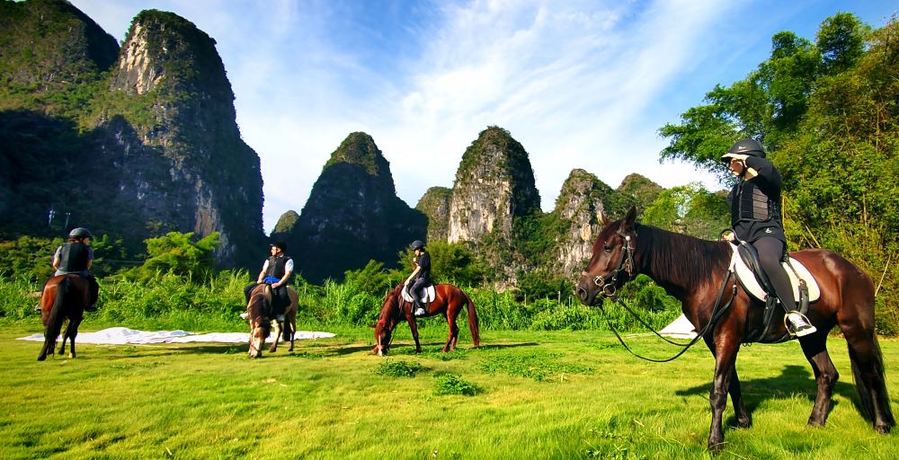 陽朔山水騎乘體驗:遇龍河畔田園騎乘體驗,穿越喀斯特峰林,感受山水畫卷。