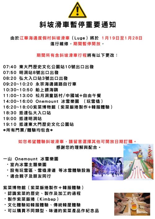 江華海邊度假村斜坡滑車擁有長達1.8公里的跑道,共兩條路線。 *行程當天亦可現場跟職員加購次數*
