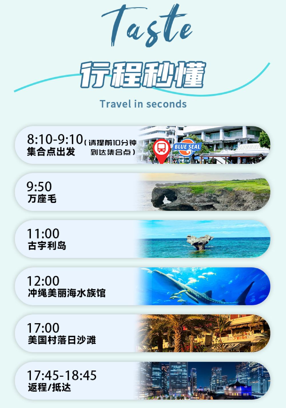 【經典景點一次打卡】涵蓋沖繩北部經典熱門景點,萬座毛+古宇利島+水族館+美國村,遊玩性體驗感升級!