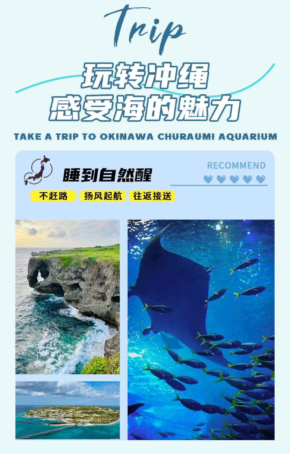 日本沖繩一日遊萬座毛+古宇利島+美麗海水族館北部南部中部可選