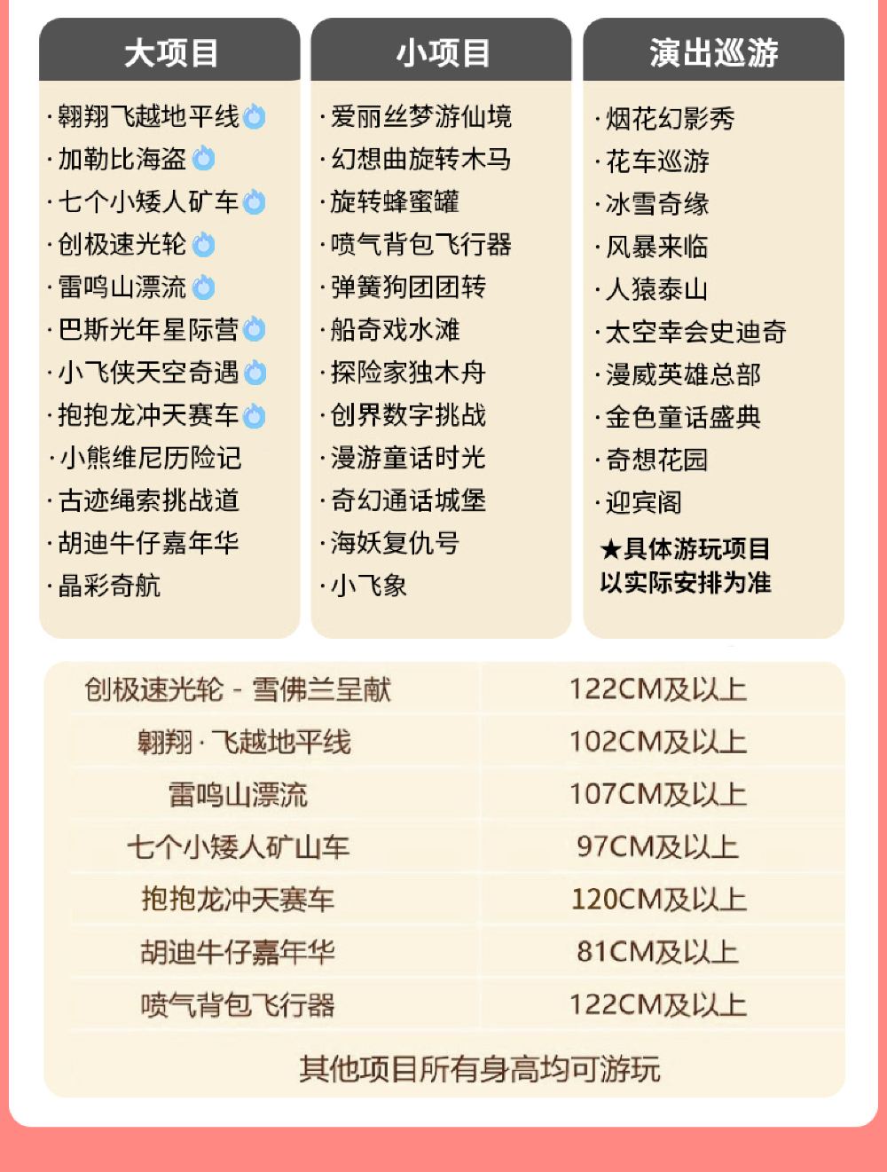 ①多種組合可選、可選:包含入園門票+快速入園安檢票-只要您體力充沛,可以帶您玩遍迪士尼所有項目,【也可以選擇不含門票的組合】1 天玩遍迪士尼。