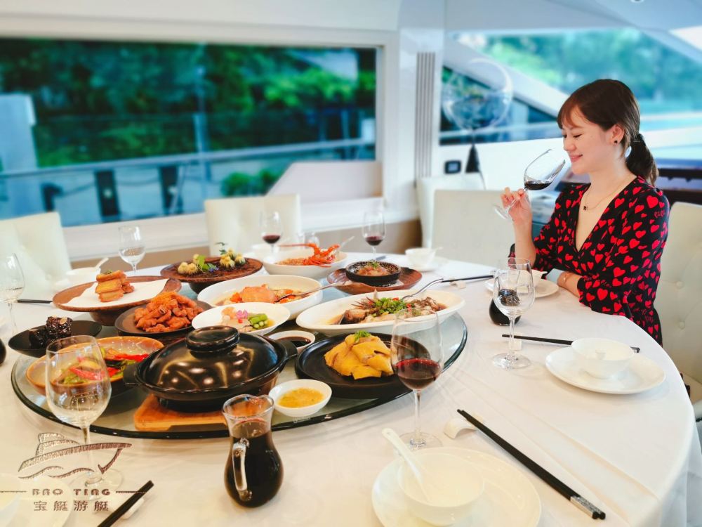 船宴套餐內容:出航1小時停泊2小時8~10人港式海鮮火鍋水果盤軟飲茶水暢飲1瓶法國紅酒簡單生日佈置一套