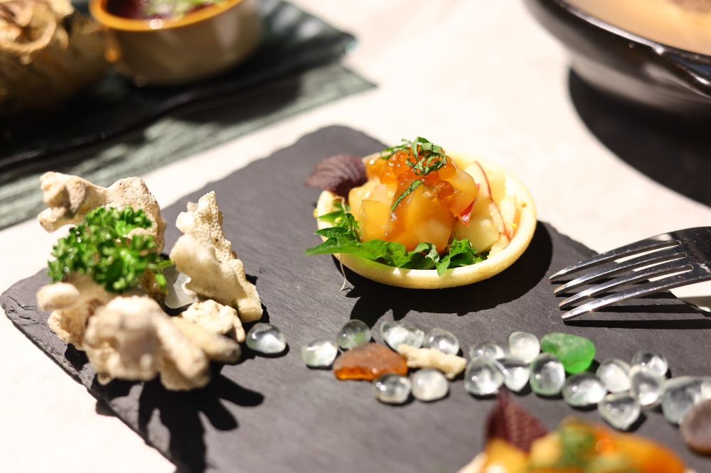 潮境主廚嚴選新鮮當季海鮮做無菜單的菜色安排