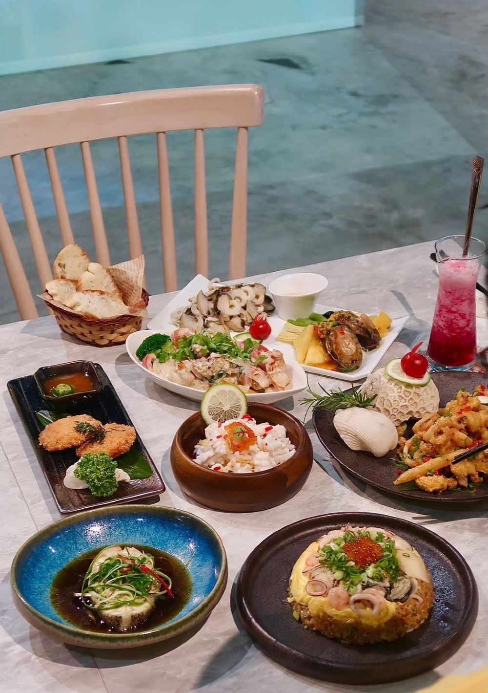 【澎湃海鮮套餐 1320 套餐】各式海鮮料理*6 道 (含海鮮主食)、海鮮湯品*1 道、招牌特調飲品 (仙人掌果醋冰沙)*1 杯、特製甜點一人 1 份、含 10% 服務費