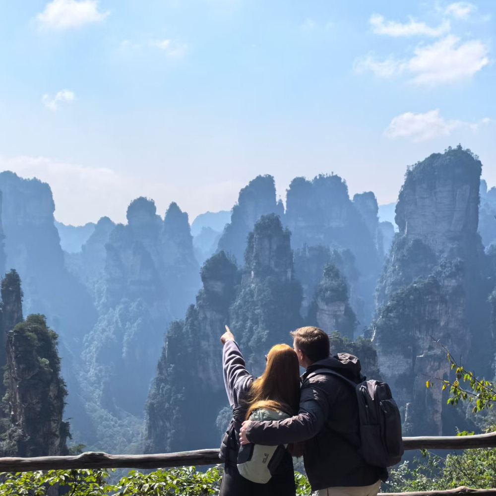 前往天子山,天子山是武陵源西北部的一座台地。登上台地後,視野開闊,是欣賞自然保護區全景、遊覽賀龍公園、西海等景點的絕佳地點。
