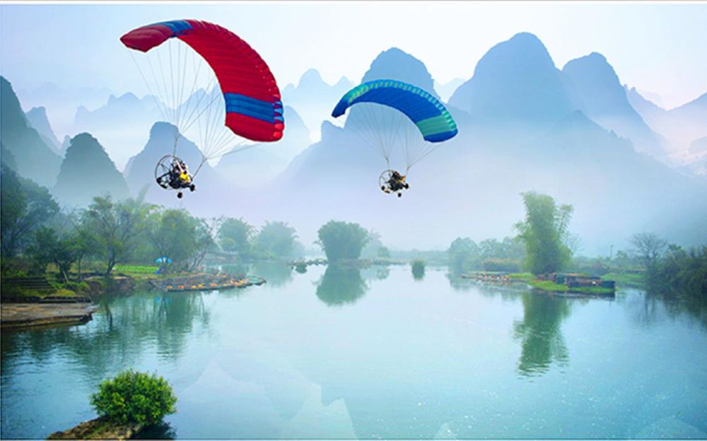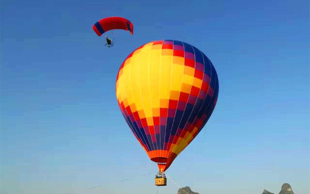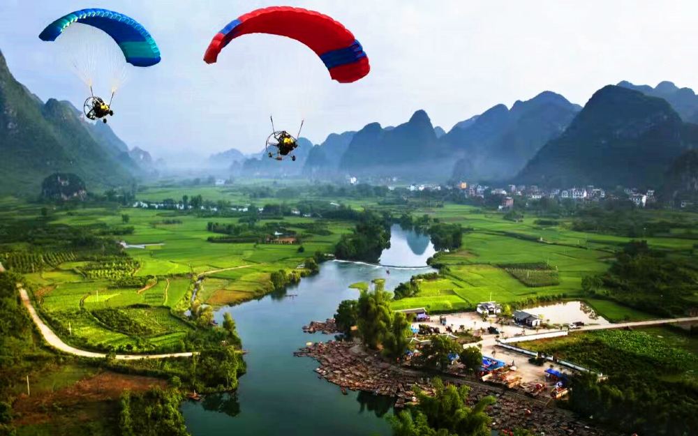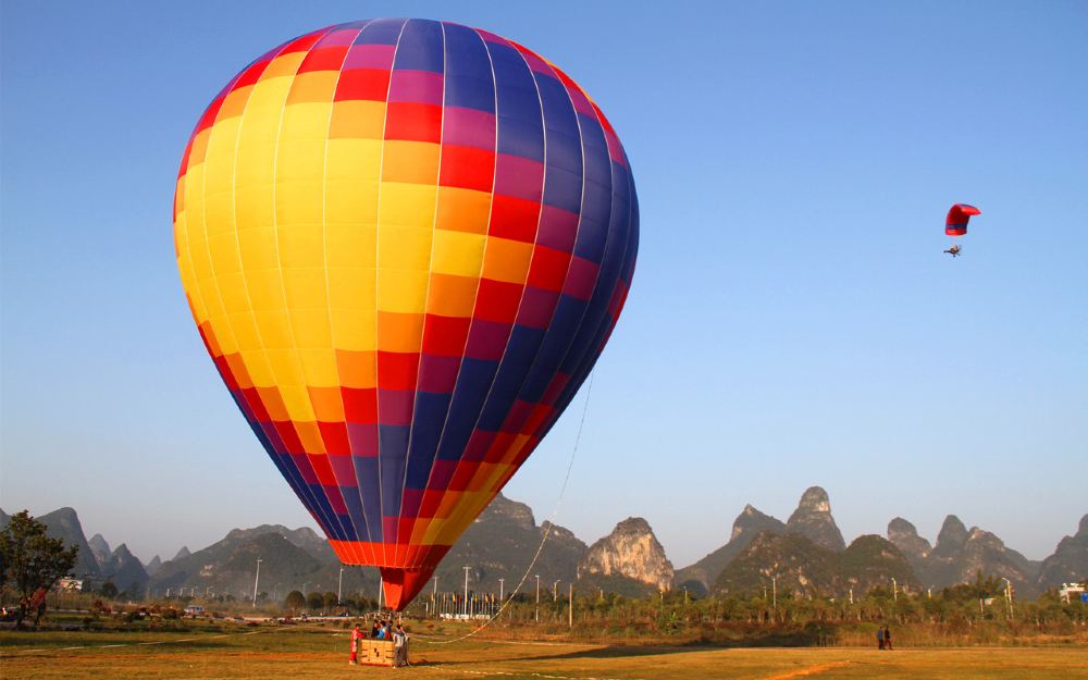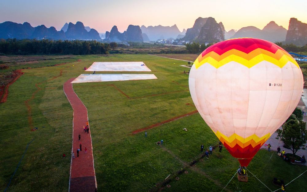 起飛點降落點依當天風向而定,有幾十個點,由當天風向而定,飛行範圍為陽朔附近十五公里範圍