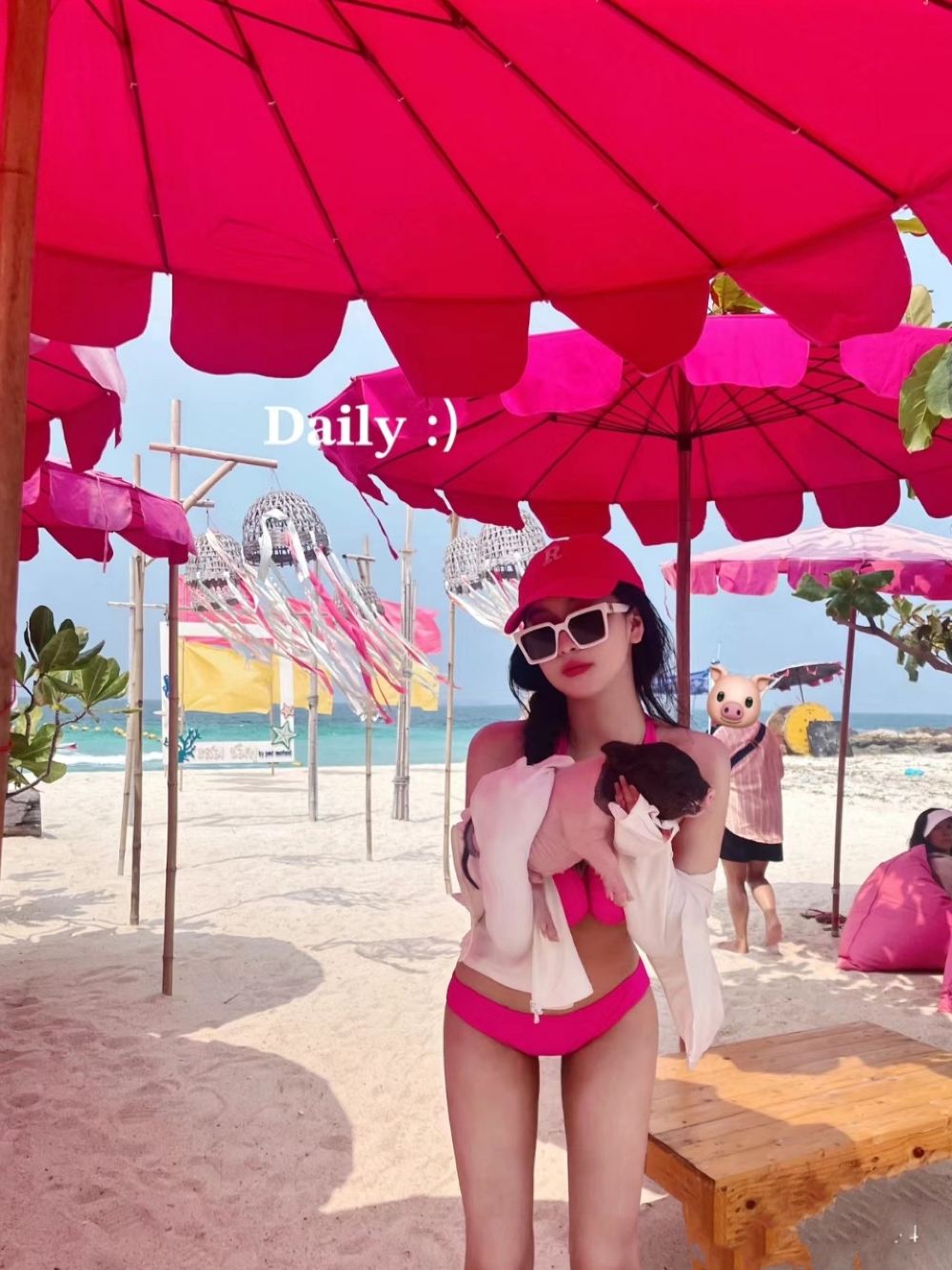 ▲ 去芭提雅的薩美海灘,粉紅色/檸檬黃沙灘️椅,打卡拍照