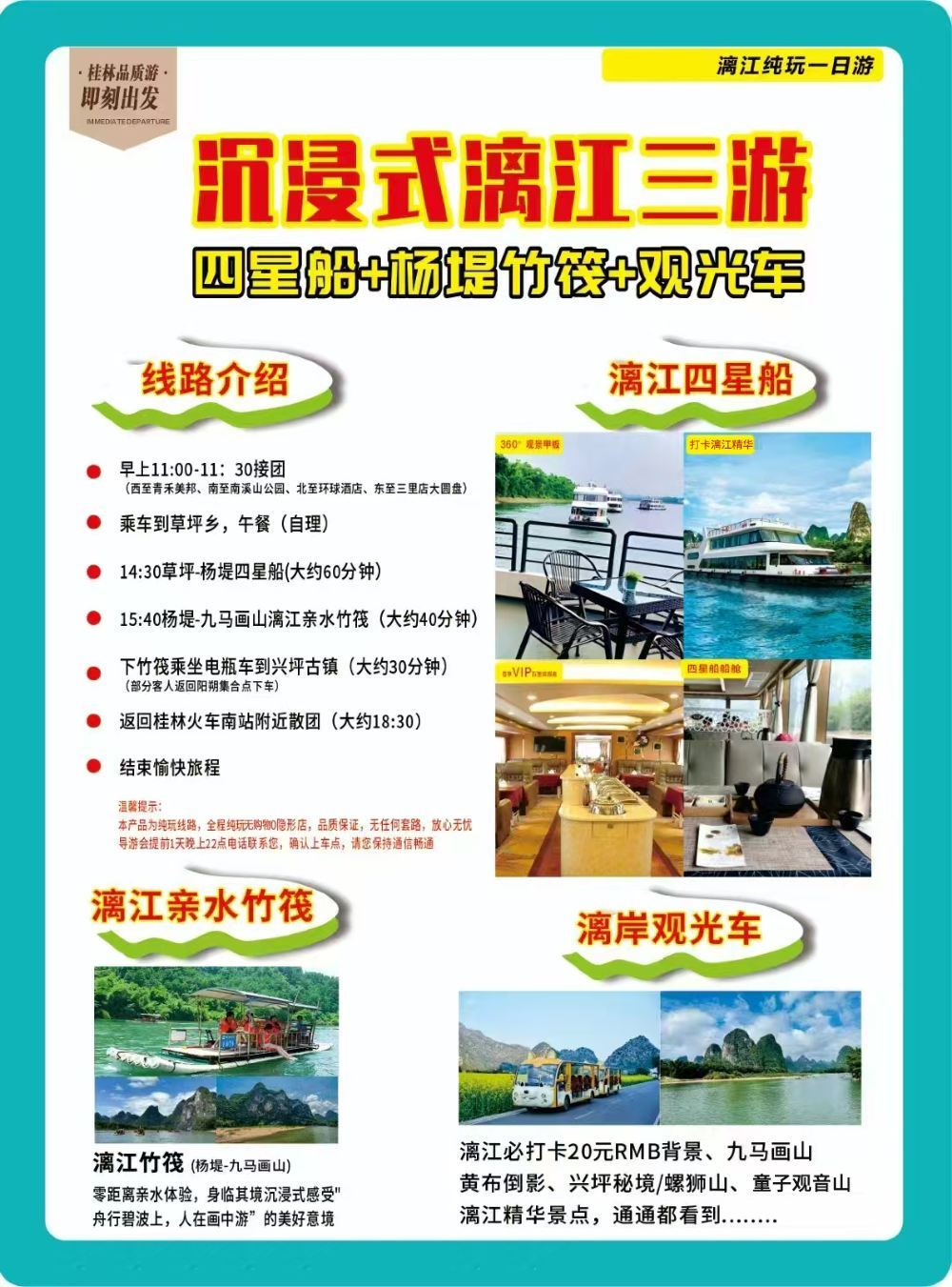 漓江四星遊輪+漓江楊堤竹筏+漓岸觀光車| 沉浸式一江三遊