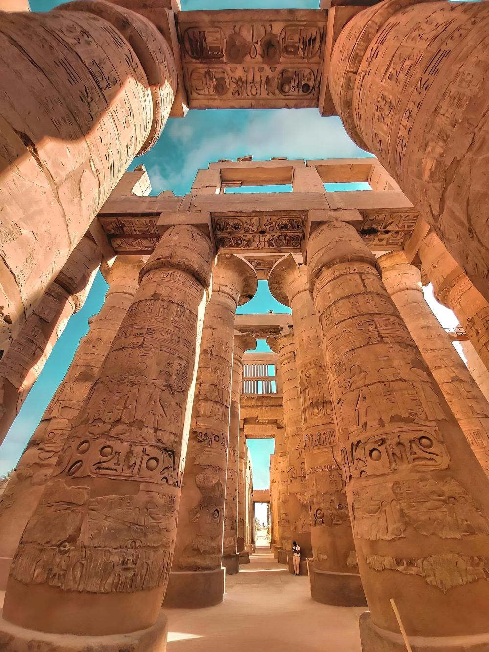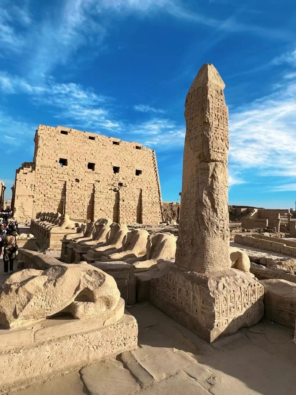 ▲ 卡納克神廟位於盧克索東北方向,是古埃及規模宏偉龐大的神廟建築群,被譽為「埃及的露天博物館」。它始建於中王國時期,歷經多個王朝的擴建,耗時近2000年才形成如今的規模,主要供奉古埃及的太陽神阿蒙。神廟的核心亮點是大柱廳,廳內矗立著134根巨大的石柱,其中12根中心柱高達21公尺,柱身雕刻著細膩的象形文字和宗教圖案,抬頭仰望,彷彿置身於石柱組成的森林之中,盡顯古埃及建築的磅礴氣勢。此外,神廟內的方尖碑、公羊甬道等景觀也極具特色,每一處都承載著古埃及的歷史與信仰,是研究古埃及文明不可或缺的重要遺址。