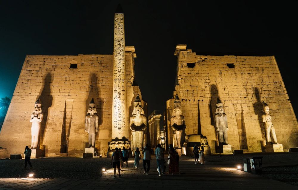 ▲ 盧克索神廟坐落於盧克索市中心的尼羅河東岸,始建於法老阿蒙霍特普三世時期,後經拉美西斯二世擴建完善,是古埃及獻給阿蒙神、穆特神和孔蘇神的神廟建築群。神廟以宏偉的柱廊和精美的浮雕聞名,入口處的拉美西斯二世巨像高達20公尺,威嚴莊重,彷彿在守護著這片神聖之地。神廟內部的柱廳、聖殿等建築佈局規整,浮雕內容豐富,既有法老征戰沙場的壯闊場景,也有祭祀神祇的宗教儀式,生動再現了古埃及的政治、軍事與宗教生活。如今,每當夜幕降臨,神廟會舉辦燈光秀,燈光照映下的古建築更顯神秘厚重,讓遊客沉浸式感受古埃及文明的魅力。