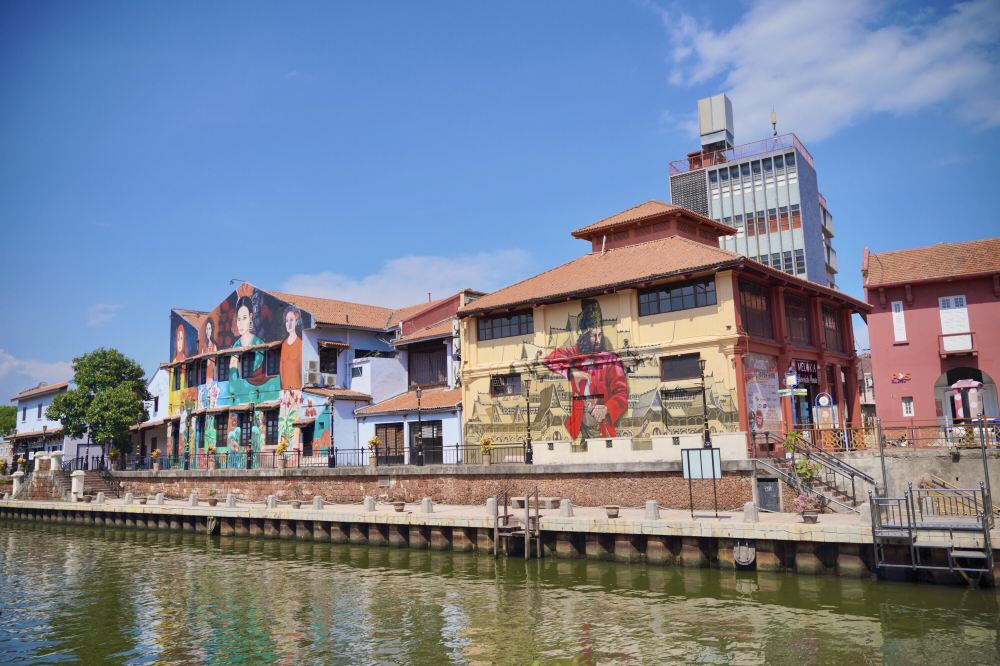 ▲ 一條河看透半部南洋史,乘復古遊船滑過 9 公里碧波,兩岸是層層疊疊的時空切片:左岸:17 世紀荷蘭紅磚倉庫,藤蔓吞噬鏽鐵窗,鸚鵡在破吊燈上築巢。右岸:百年華人商號「陳金聲」褪色招牌下,少年正噴塗巨型漁船壁畫。水面:白鷺掠過倒影中的葡萄牙堡壘殘垣,貨輪笛聲驚散魚群