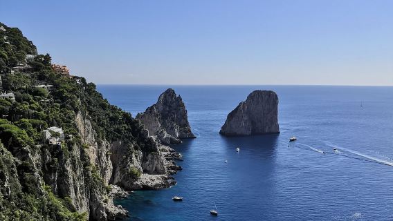 乘船遊覽卡普里島碧綠的海水和風景如畫的海岸線。聆聽船長介紹每個景點的背景資訊。在藍洞享受自由活動時間,您可以租一艘划艇,穿過石門,進入被藍光照亮的閃閃發光的洞穴。旅程從集合點出發,途經法拉格里奧尼岩石等景點。參觀島嶼周圍的海蝕洞。然後,在藍洞稍作停留,並可當場購買門票。船長在藍洞拋錨後,您可以下船,轉乘木製划艇參觀洞穴。遊覽結束後,您可以再次登船繼續遊覽,然後返回出發點。