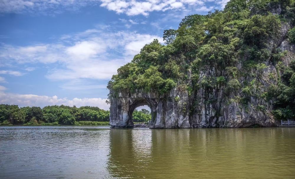 ▲ 象山設施以像鼻山為中心,涵蓋了水月洞、象眼岩、普賢塔、雲峰寺及寺內的太平天國革命遺址陳列館等景觀。附近還有隋唐開元寺的捨利塔。主要景點象鼻山象鼻山,原名漓山,位於桂林市桃花江與漓江匯流之處,因其看上去猶如只大像在用鼻子飲水,故後得名象鼻山。