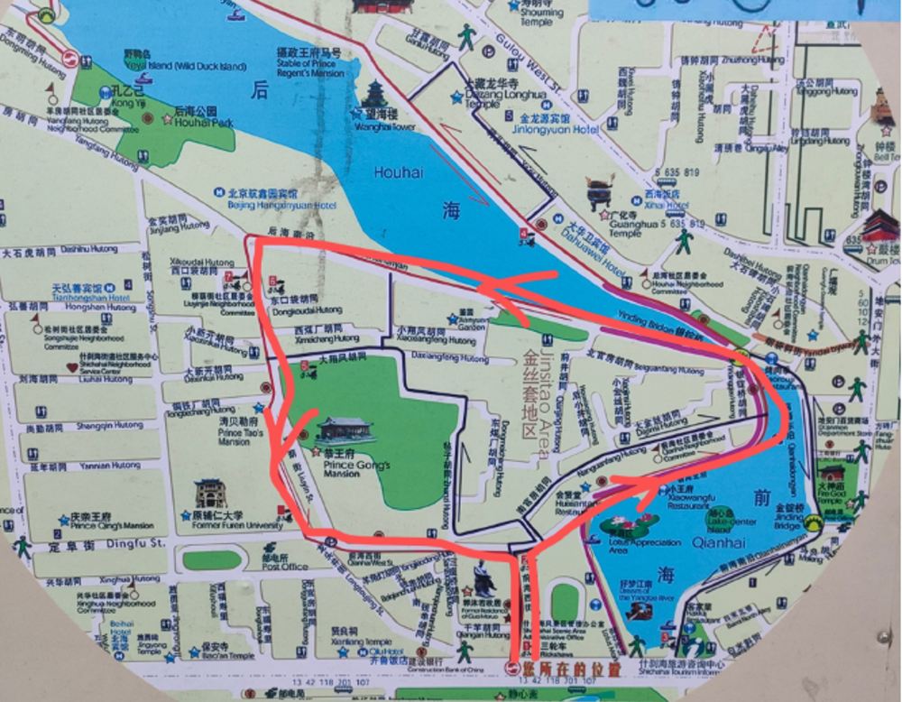 沿著郭沫若故居、什剎海體校、前海西街、荷花市場、前海酒吧街、銀錠橋、什剎海風景區酒吧街、大翔鳳胡同、元帥街、柳蔭街,途經恭王府門口,再回到郭沫若故居的固定路線,開啟一場獨特的老北京之旅吧!