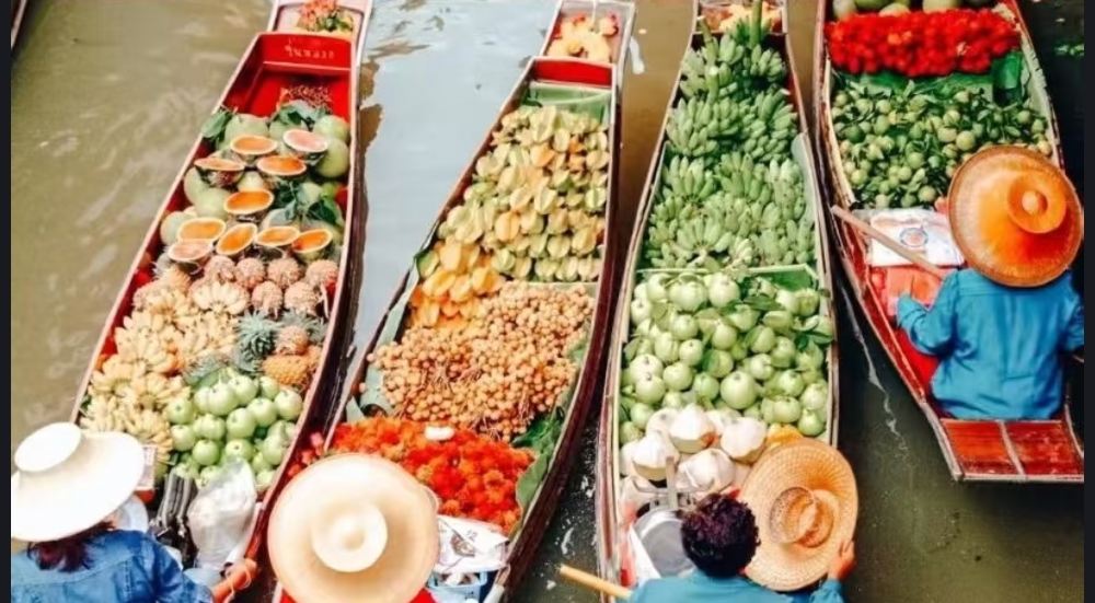 ▲ **泰式船餐**:划船採購烤鱷魚沙嗲+芒果糯米飯(入場門票含船票,免排隊)。 **吊腳樓機位**:二樓露台拍攝河道全景,避開人潮。