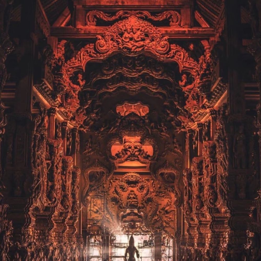 ▲ ️ **木雕殿堂光影**:拍攝晨光穿透105公尺柚木塔鏤空雕花 ️ **AR文化解碼**:掃描浮雕觸發3D建造動畫。