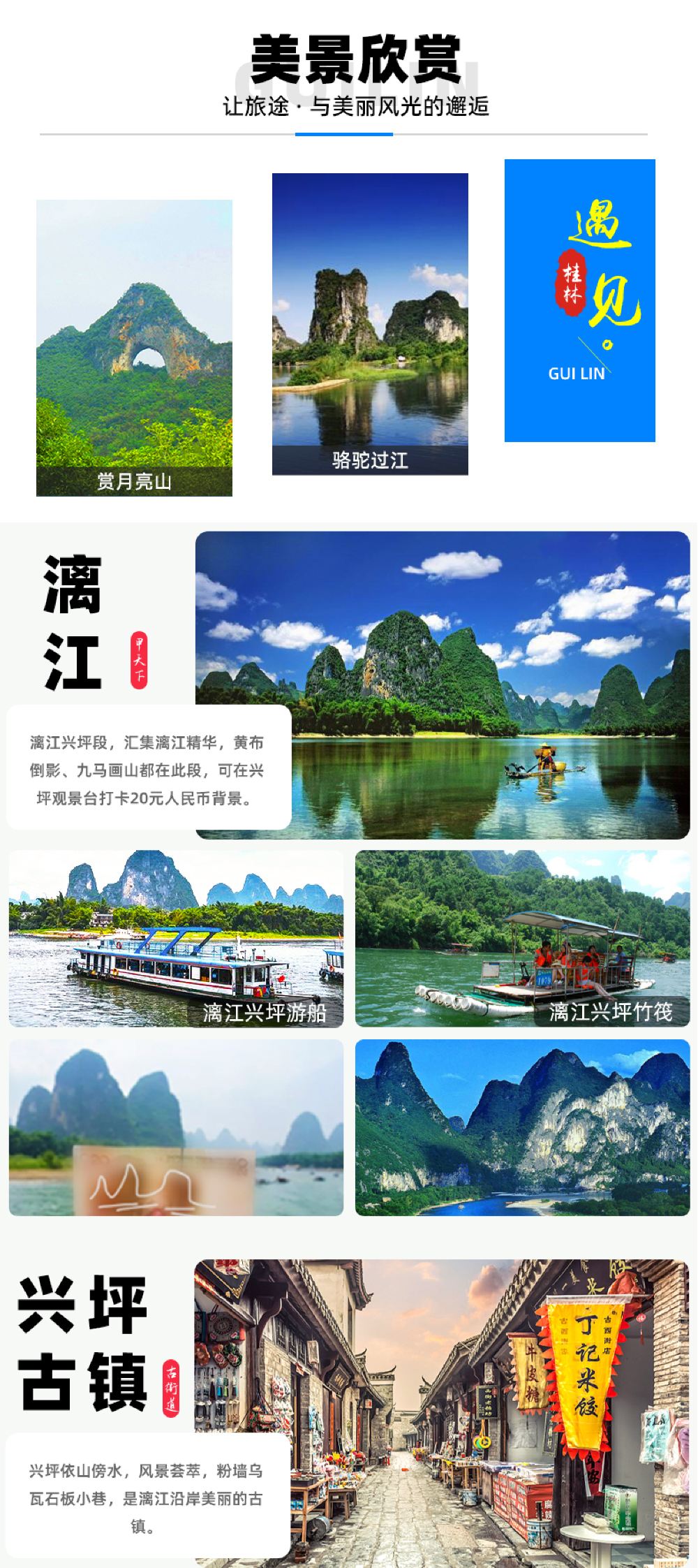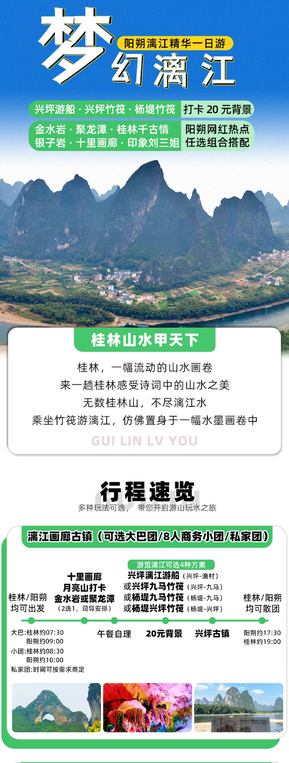 C3線:漓江楊堤九馬竹筏+聚龍潭+20元背景+興坪古鎮+十里畫廊;