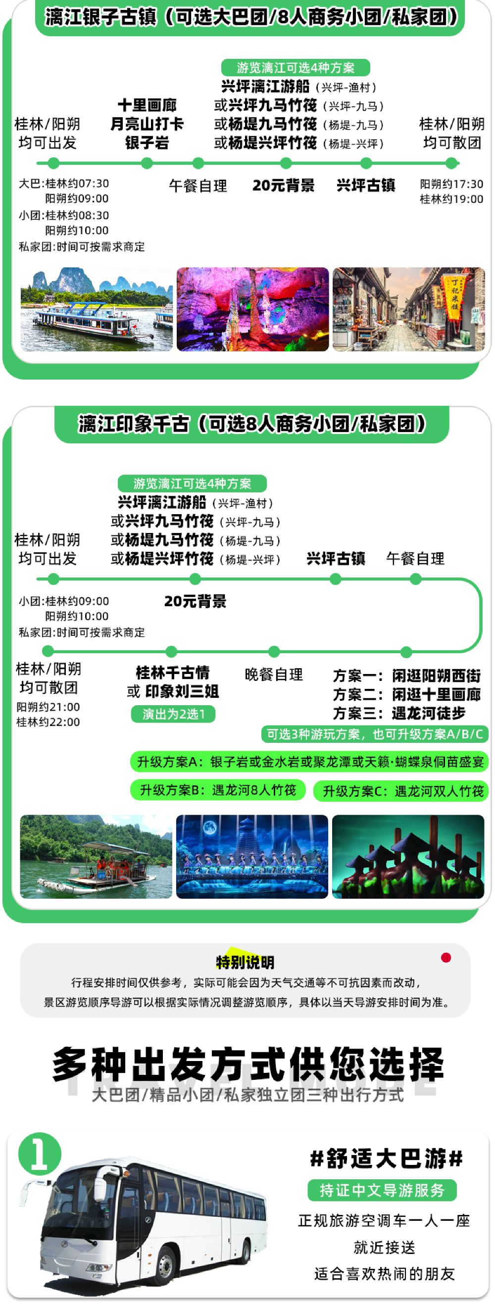 1、線路可選大巴團或2-8人小團或私家獨立團出遊方式(遊客可根據自身需求在下訂單購買時選擇對應的出遊方式下單)。