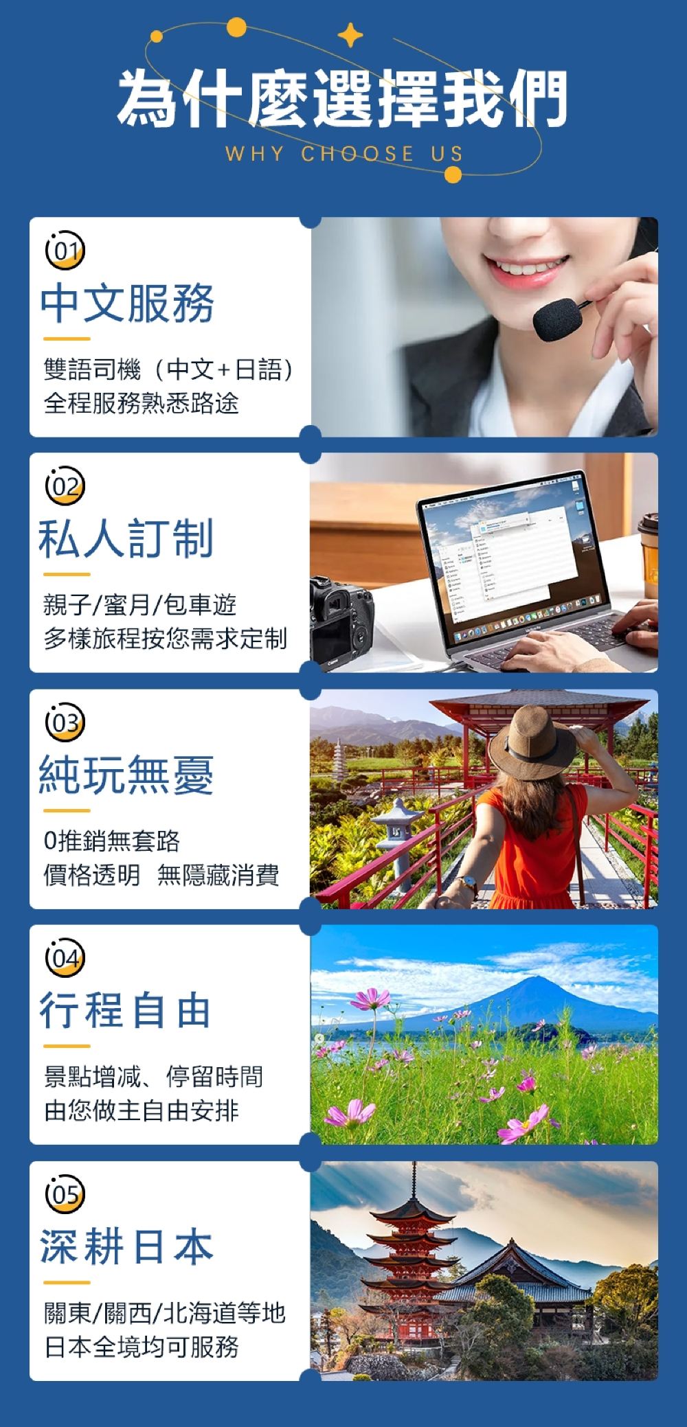 2、如果需要富士山/河口湖出發,東京市區結束,或者東京市區出發,河口湖/富士山飯店結束,也都可以安排,價格不變,用車時間為8小時(需要留2小時,司機返回東京)