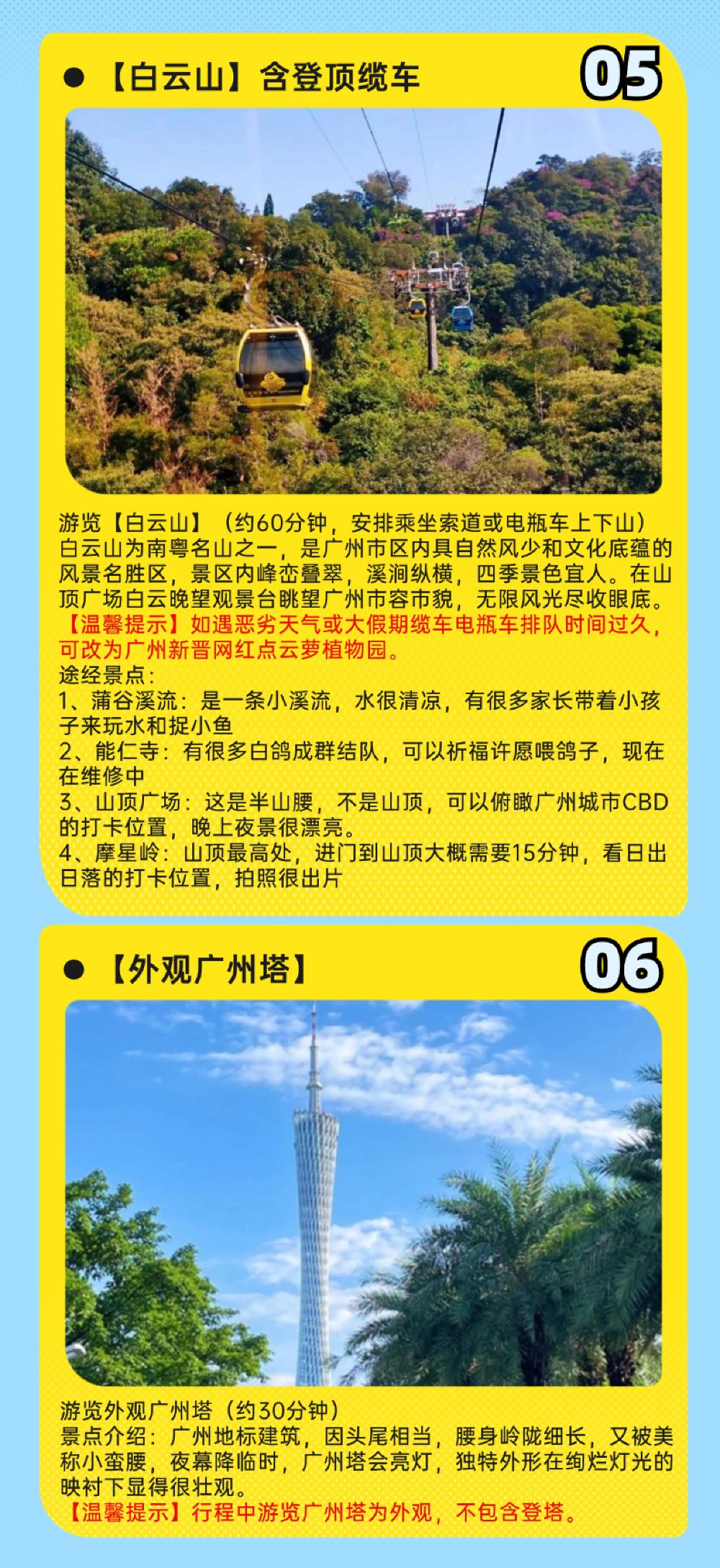 深度暢遊白雲山,索道或電瓶車上下山,俯瞰廣州城。