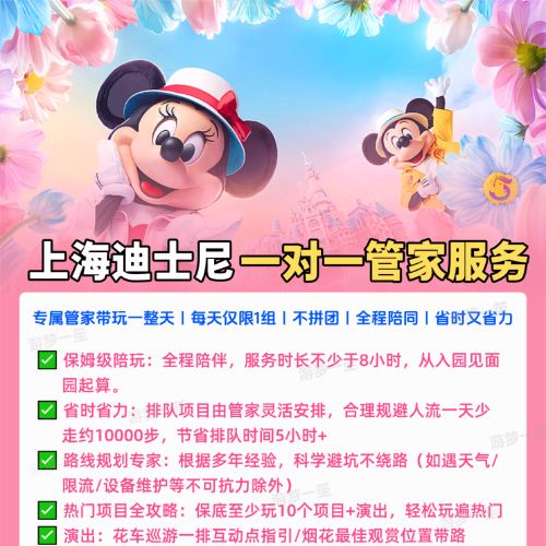 2.本商品不含門票,請自行提前購買好您所有出行人的入園門票(管家門票無需您付款哦~)。
