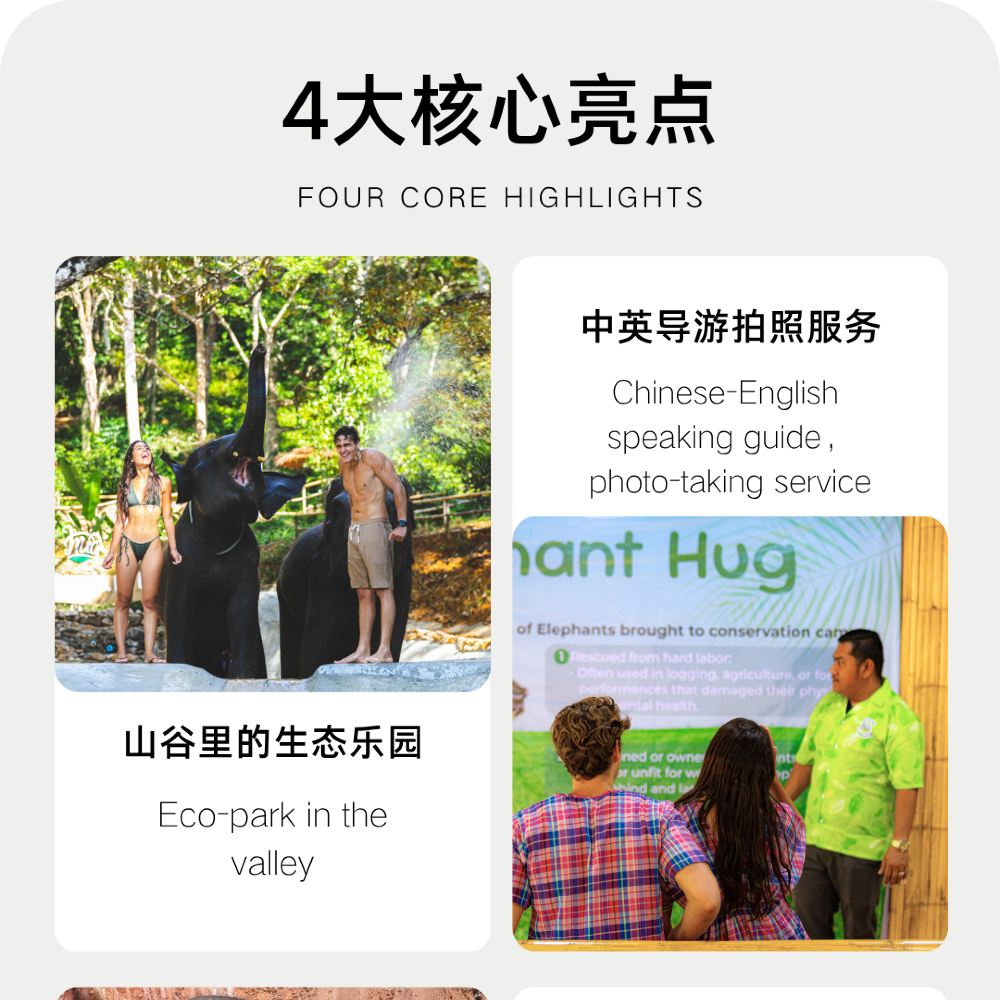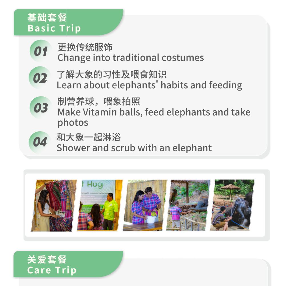 【互動項目】:泰式沉浸體驗,穿傳統泰式服飾餵象、學做泰式點心,專業攝影師跟拍