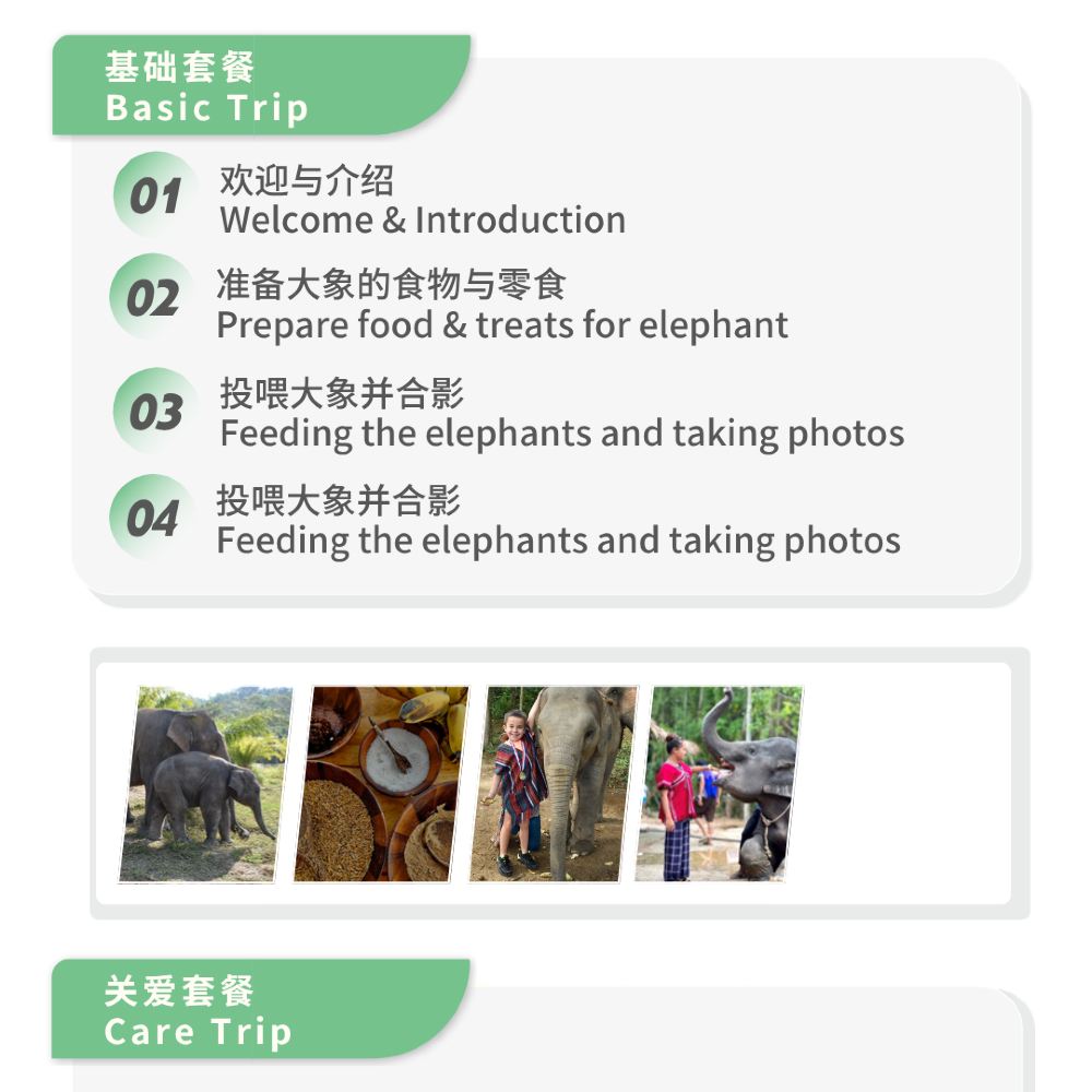09:00/14:40 | 導遊導覽關於大象的科普知識和注意事項,領取餵食大象的食物